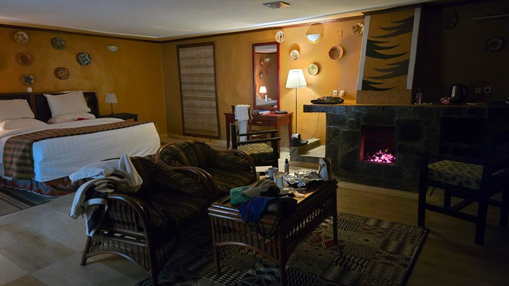 Eventually we arrived at the Lodge where I was to stay at the foot of tbe Mountain Volcano. A rustic location of comfortable bungalows where a fire was lighting for me that evening and a hot water bottle in the bed!!!