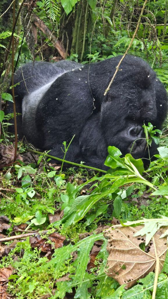 To observe their behaviour was startling! The sense of familial habits so like our own, was astounding. We were allowed one hour, no more. I stopped taking pictures as it was becoming a distraction from just observing. After all, I will never get the chance again. A blackback ( about 15 feet tall) decided to run at us , which was a little chilling, but the Guide told us, he was just establishing his presence with us!!!!