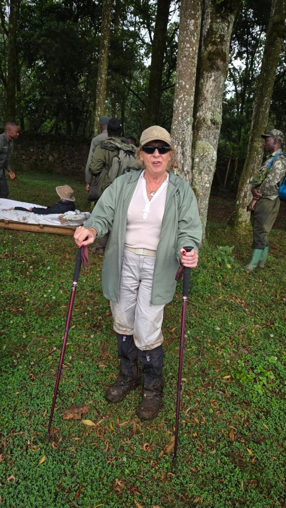 All too soon, our time was up, not a moment past the hour!! We started the trek back, exhilarated after our unique encounter. The rain had made the trails very slippery and slimy and the return trek was much more difficult and took longer, but nobody minded.