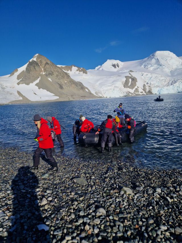 A bright azur blue sky, a sparking white palette of icebergs, a whale blow in the ocean and I am not even dressed yet!!! I can hardly pull myself away from this magnificent sight, of the Antarctic Sound, seen by many intrepid explorers before us and some lucky tourists like ourselves. Because of strict restrictions, only a limited number of ships are allowed into tbe area at a time and no more than 100 people can be ashore at one time, so logistics are vital for the crew.